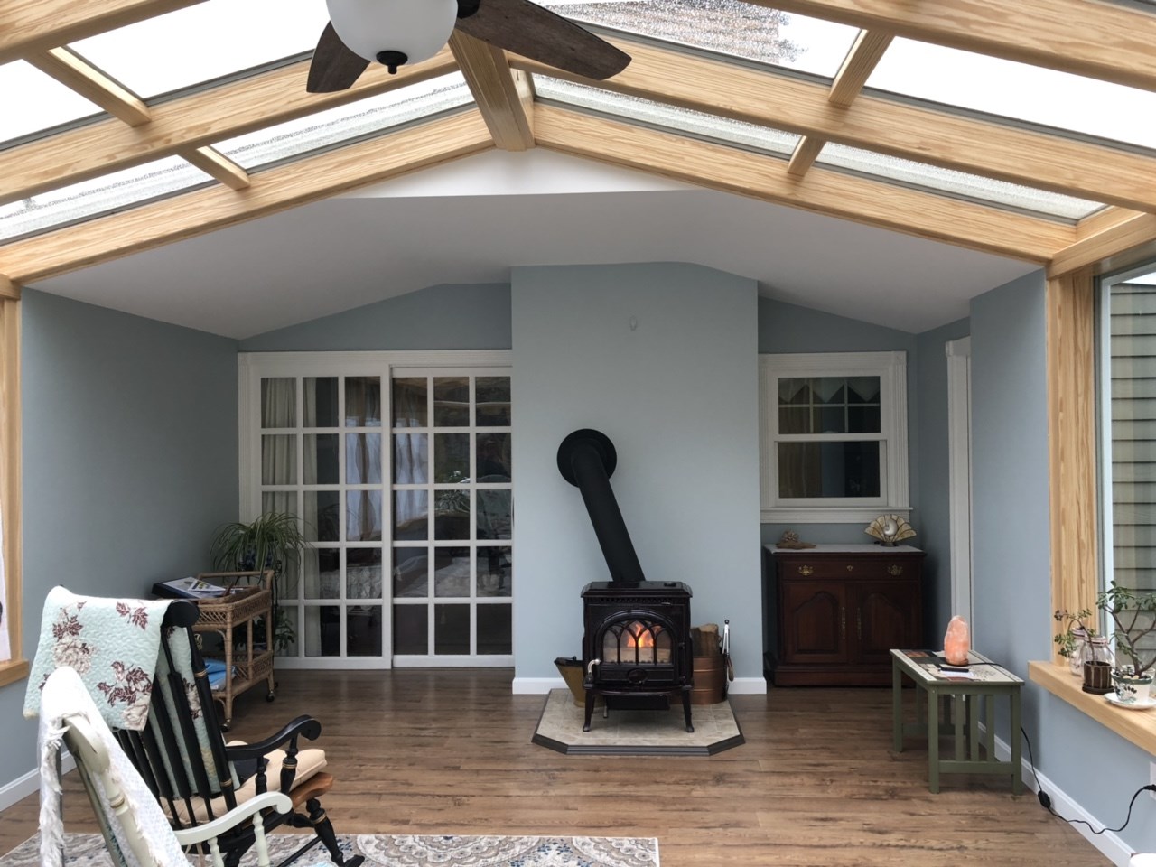 - Highlights: Fully insulated four-season sunroom addition, thermal-rated glazing systems, cathedral ceiling framing, structural tie-in to existing home, HVAC integration, and interior finish detailing designed for year-round comfort.