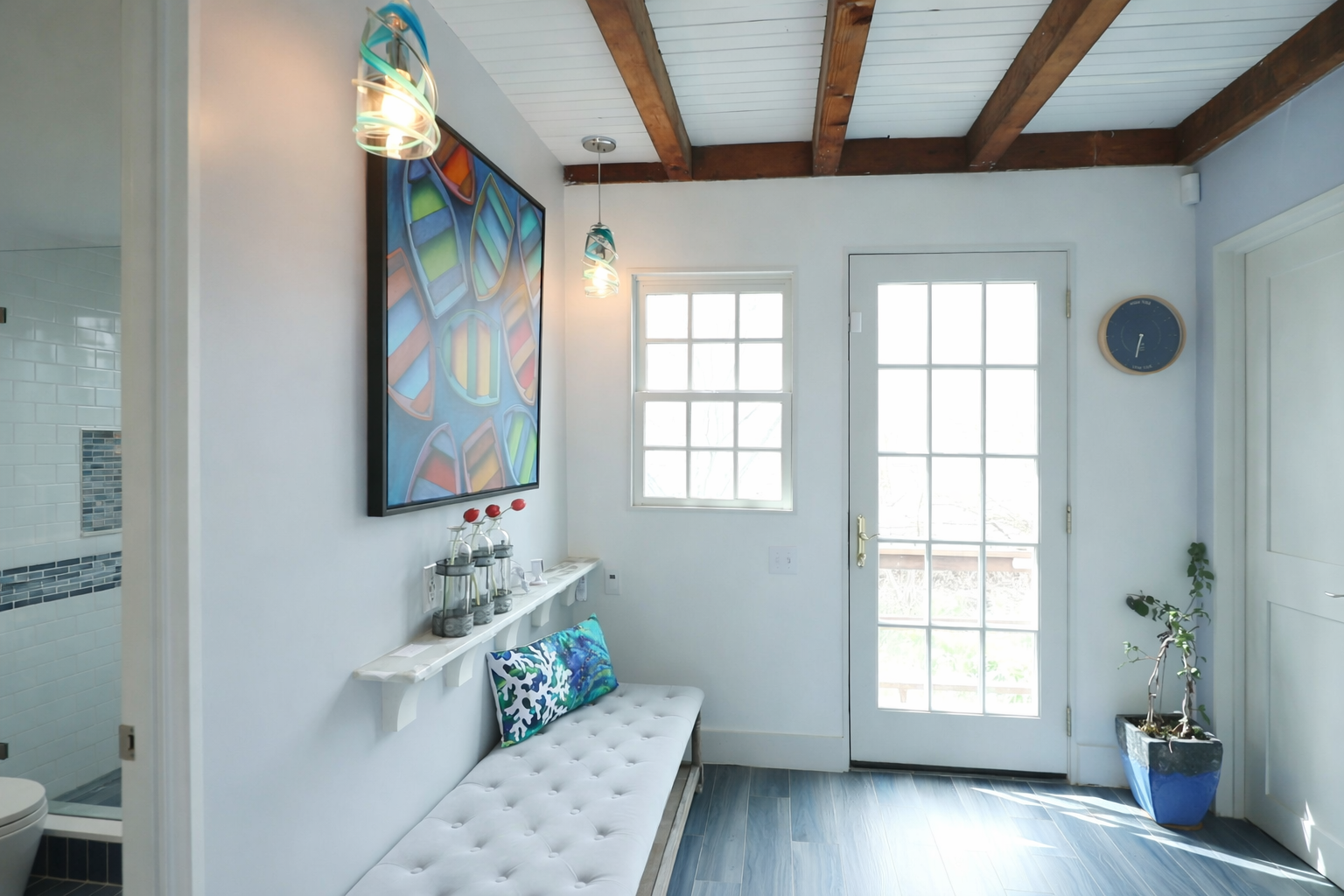 - Second-floor improvements to the hall, master bath, master bedroom, and studio created a more cohesive interior with upgraded storage, fixtures, and architectural detail.