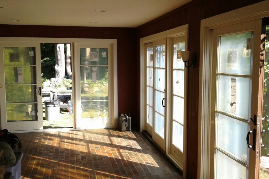 - Three existing sunroom French doors were removed and replaced to improve access, weather protection, and exterior performance