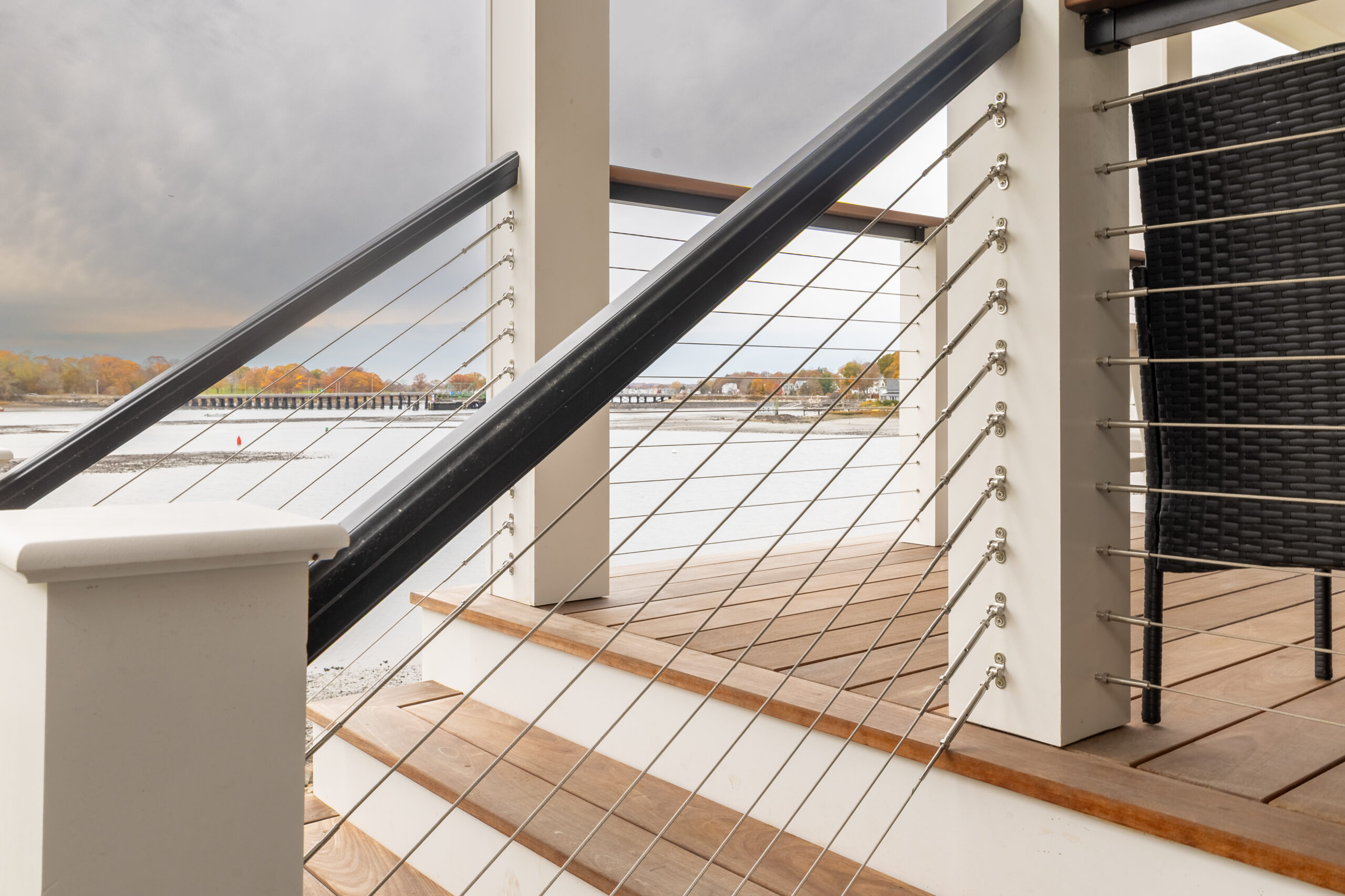 - Everlast siding, PVC trim, composite decking, and cable railings were selected for durability and low-maintenance exterior performance