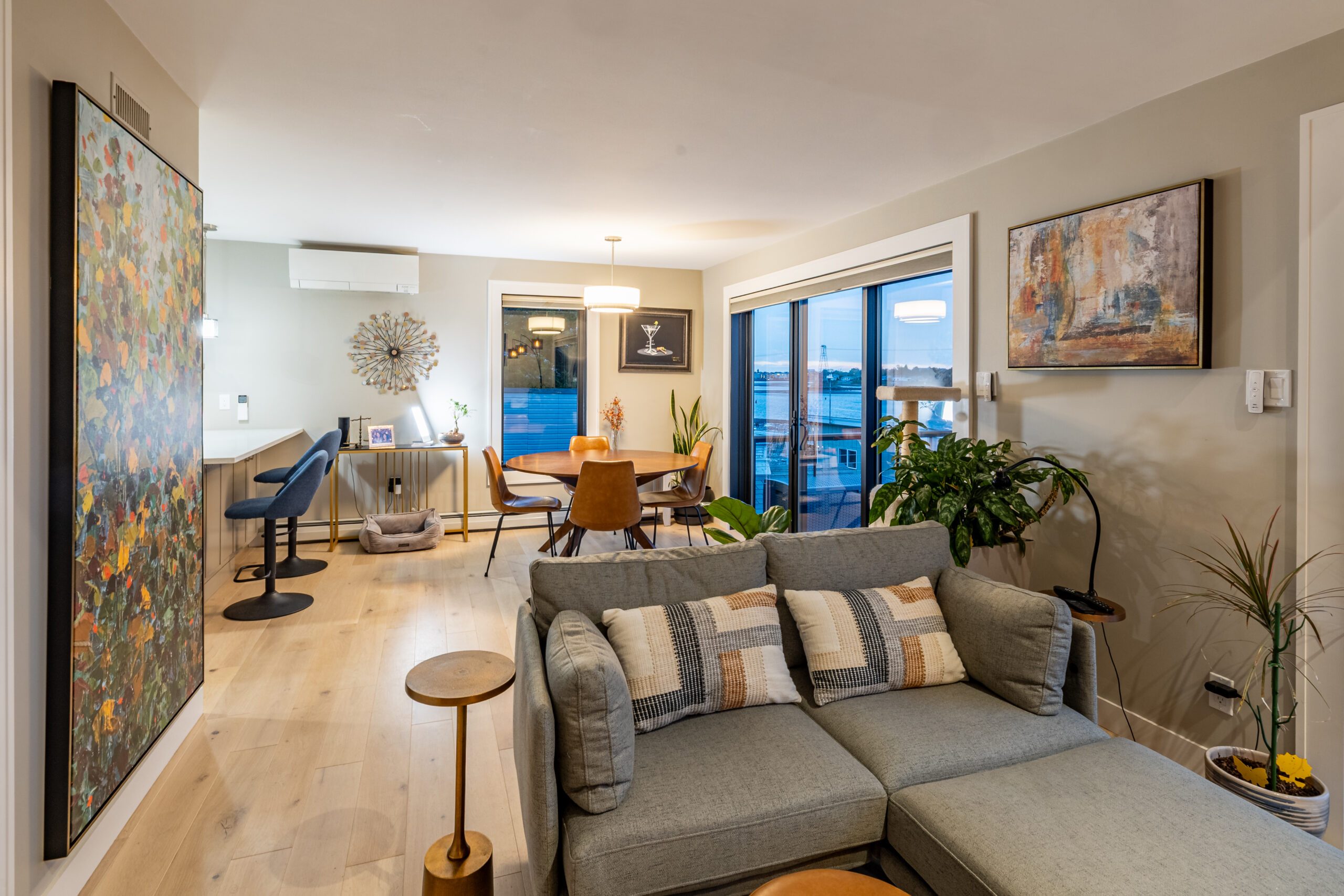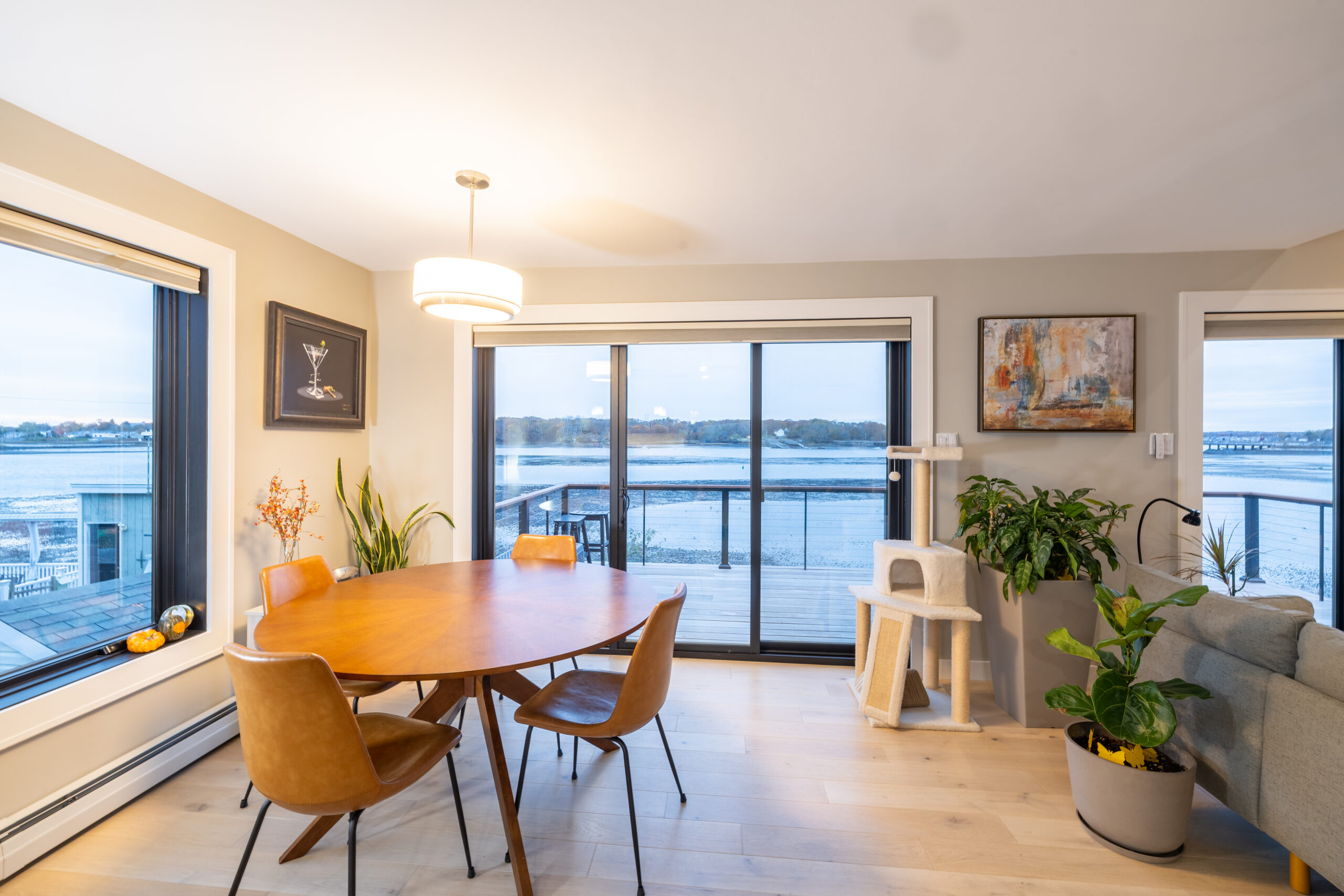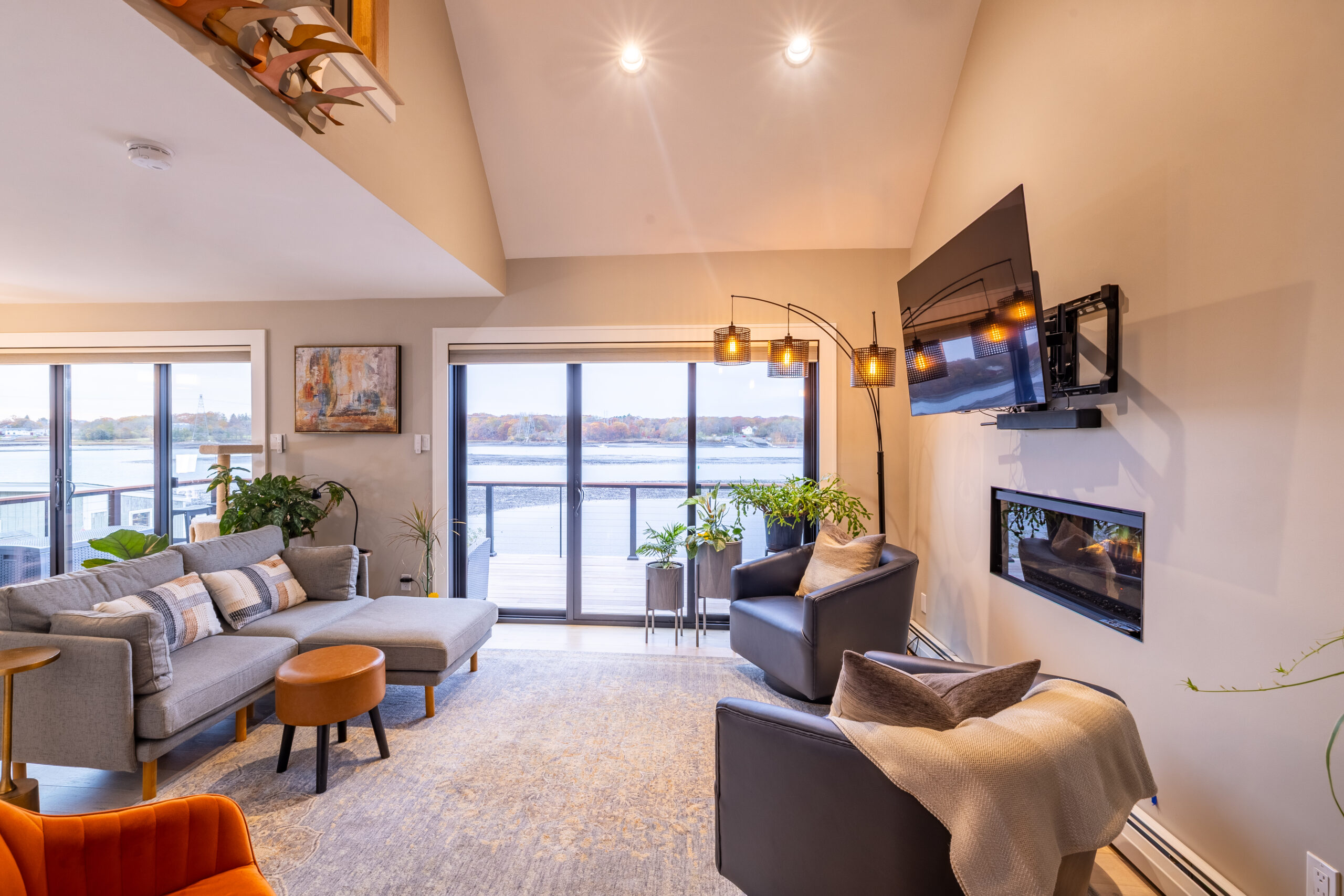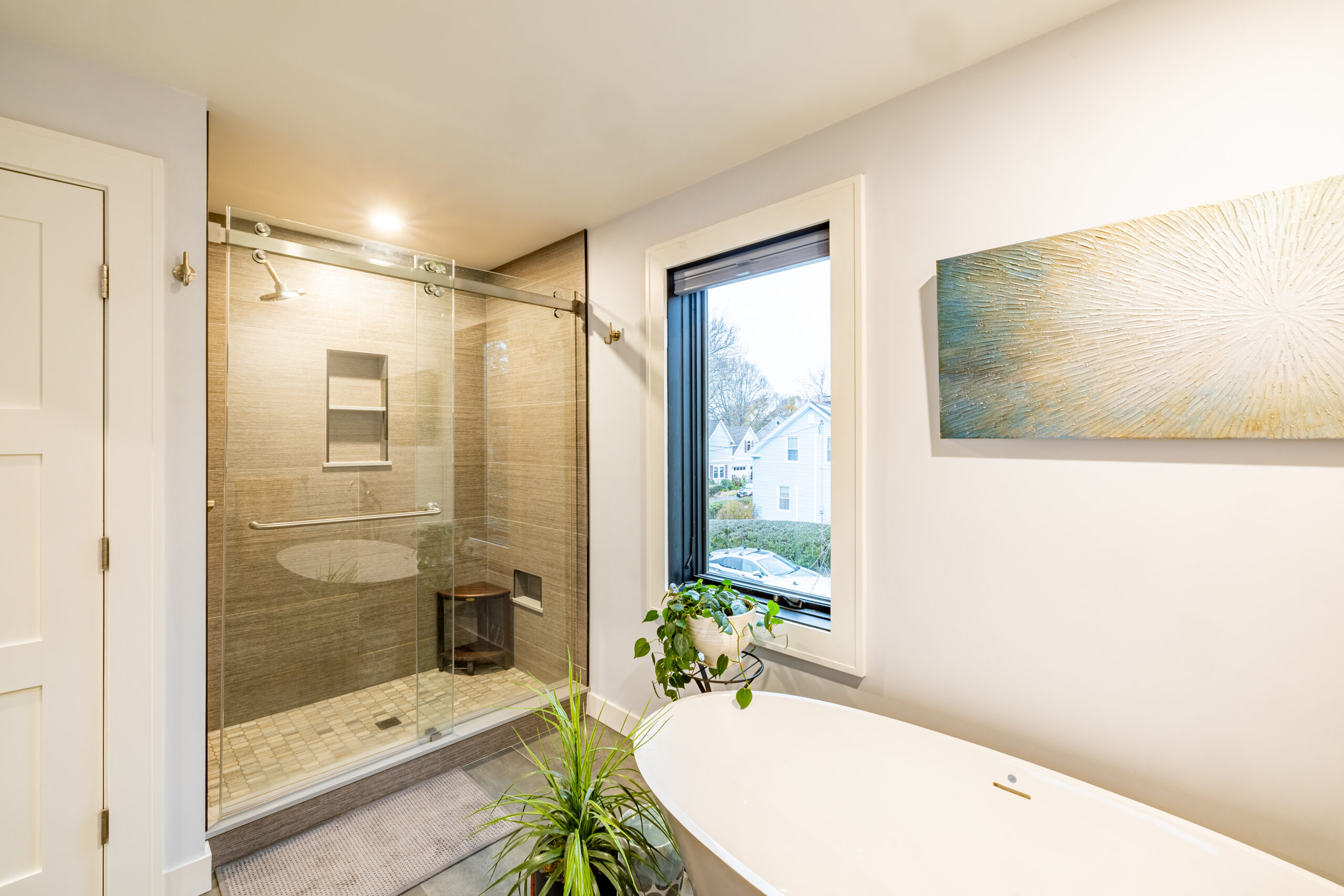 - Marvin sliders, custom doors, spray foam insulation, plaster, flooring, and tile brought comfort and finish continuity to the interior spaces
