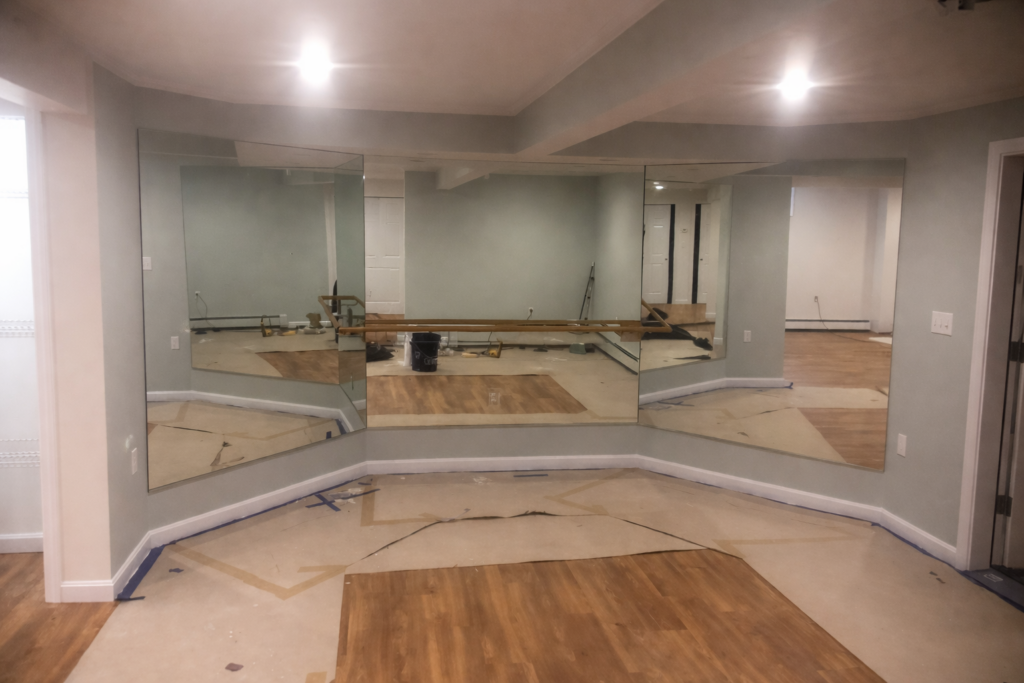 - Scope: Basement finishing including framing, plumbing, electrical, insulation, plaster, interior carpentry, dry bar installation, gas fireplace, stair upgrades, vinyl plank flooring, mirrors with brass rail, and painting