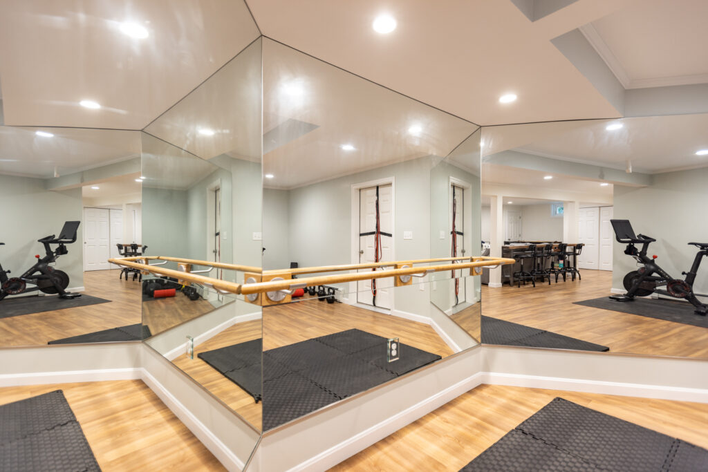 - Highlights: Approximately 850 square feet of finished basement space, custom framing, dry bar cabinetry with beverage and wine storage, Heat & Glo Mezzo72 gas fireplace, upgraded stairs with oak treads and brass handrail brackets, vinyl plank flooring, mirrored ballet/barre area, hydronic baseboard heat, recessed lighting, and detail-driven finish carpentry.