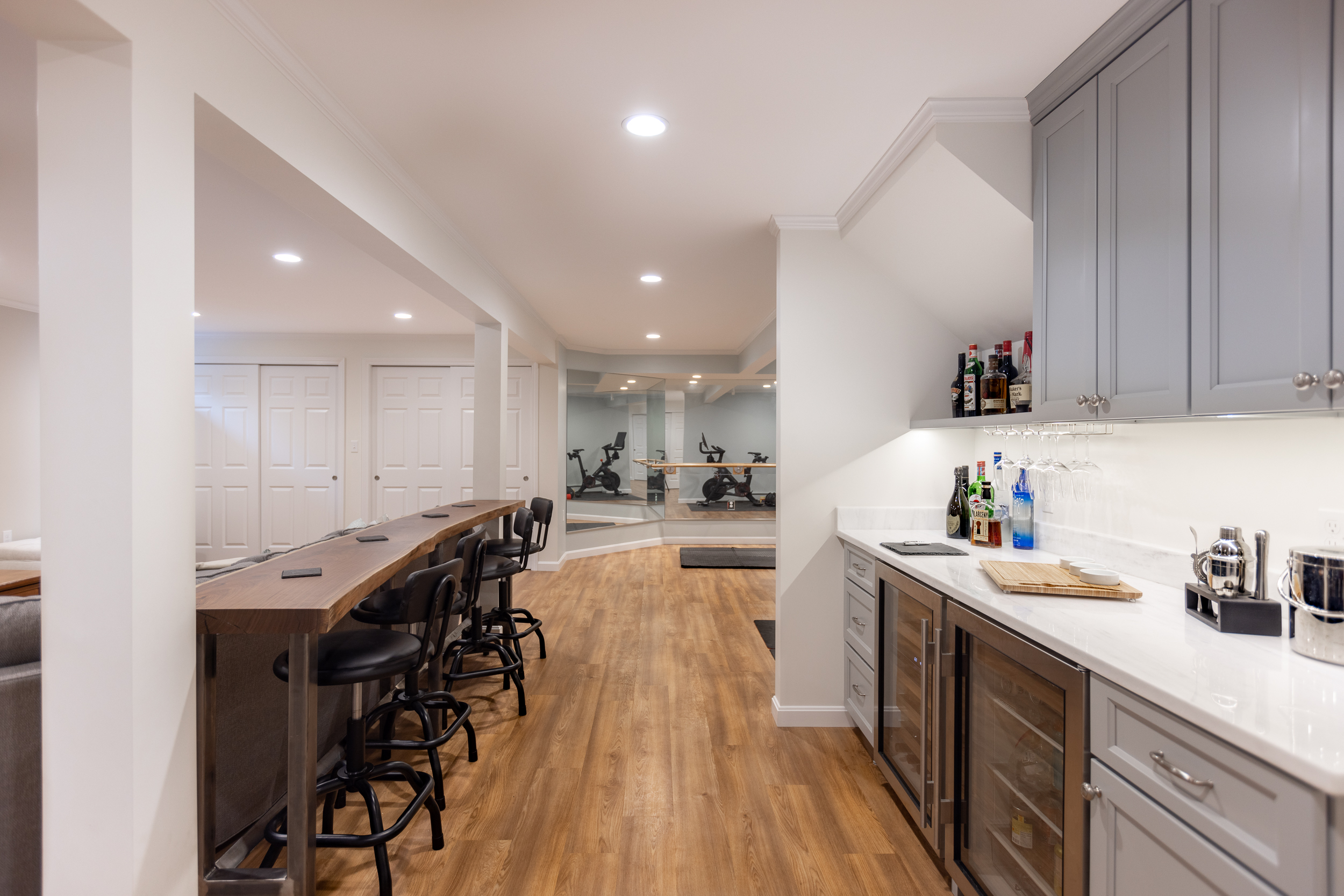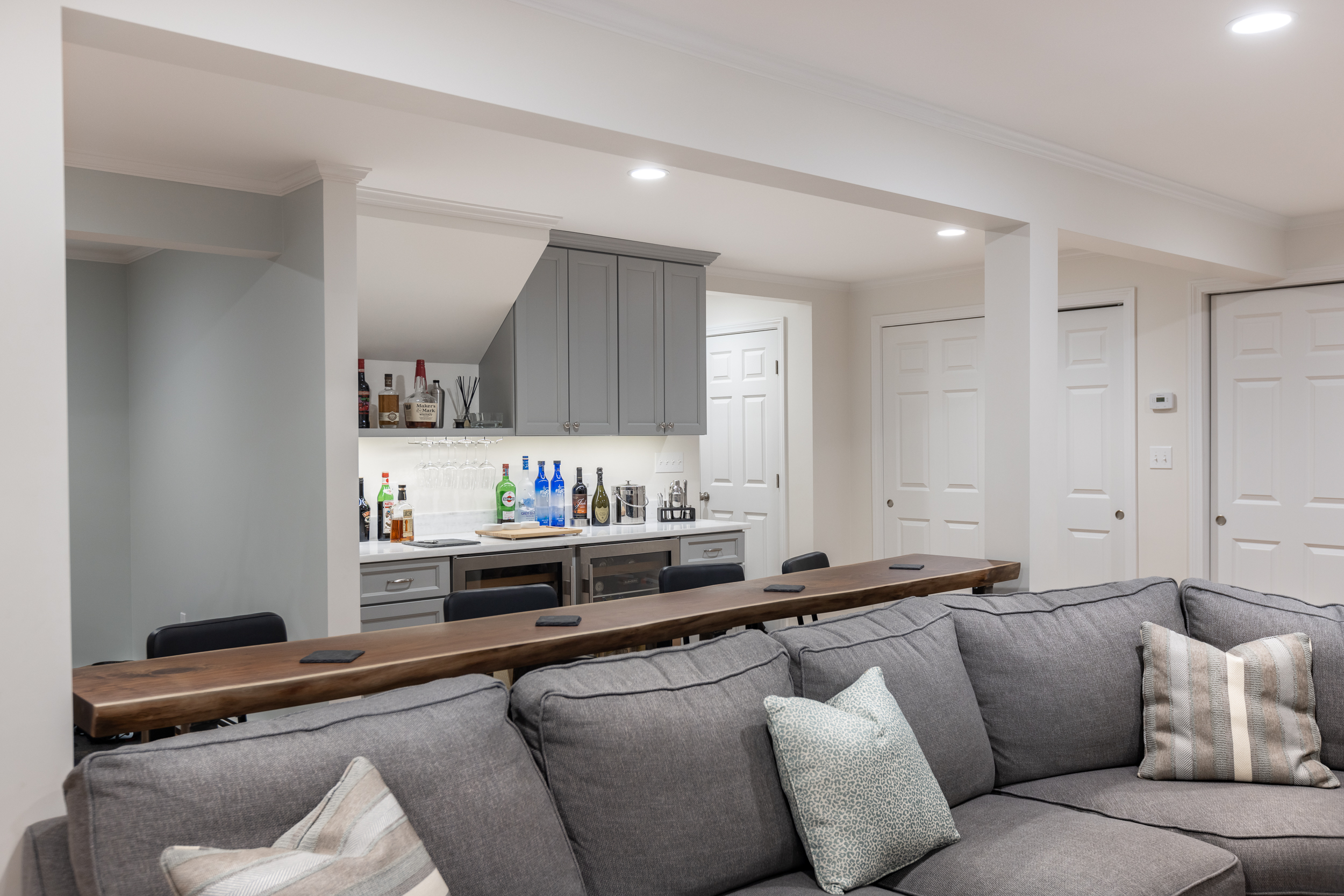 - Basement Living Space + Dry Bar Package: $130,000 – $160,000 (7–9 Weeks)