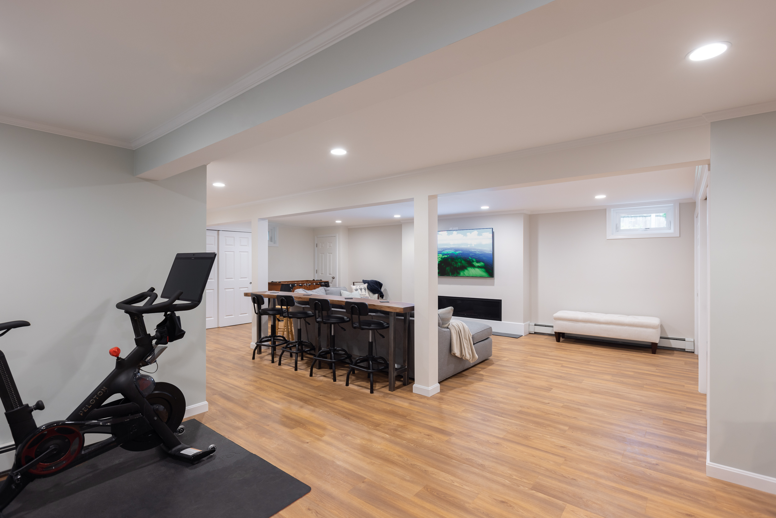 This finished basement renovation project in Beverly, MA is ideal for homeowners who want to turn underused lower-level space into a more comfortable, functional extension of the home. It is especially well suited for clients who value custom storage, entertaining features, upgraded finishes, integrated heating and lighting, and a design-build approach that brings together utility, craftsmanship, and long-term livability.
