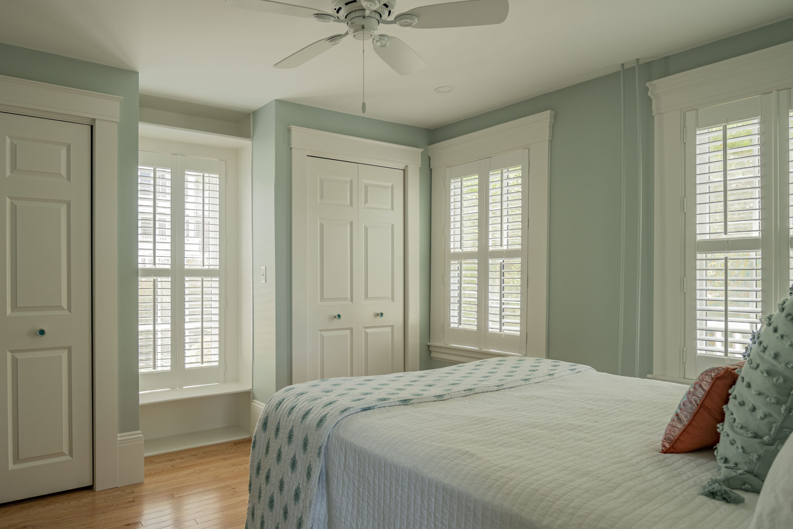 - Hardwood flooring, trim carpentry, pocket doors, and closet build-outs added warmth, storage, and architectural detail