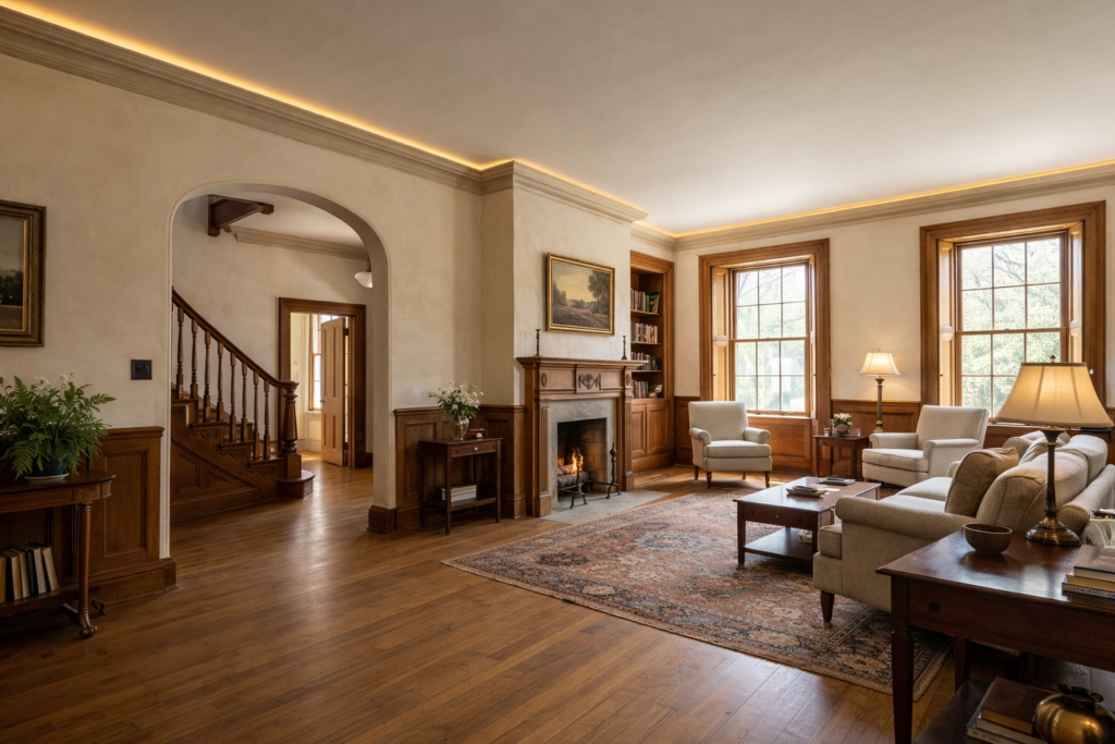 • Material Sourcing – Match your 1890s molding profile exactly or source antique floorboards that blend seamlessly